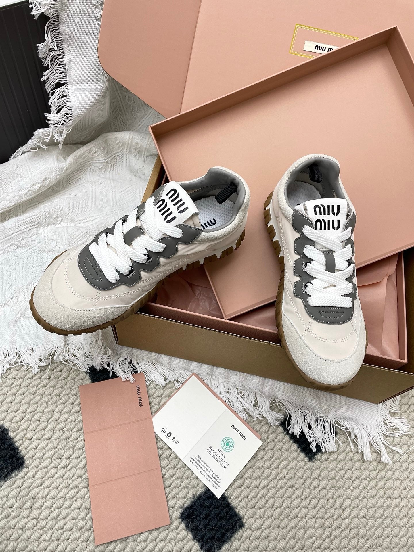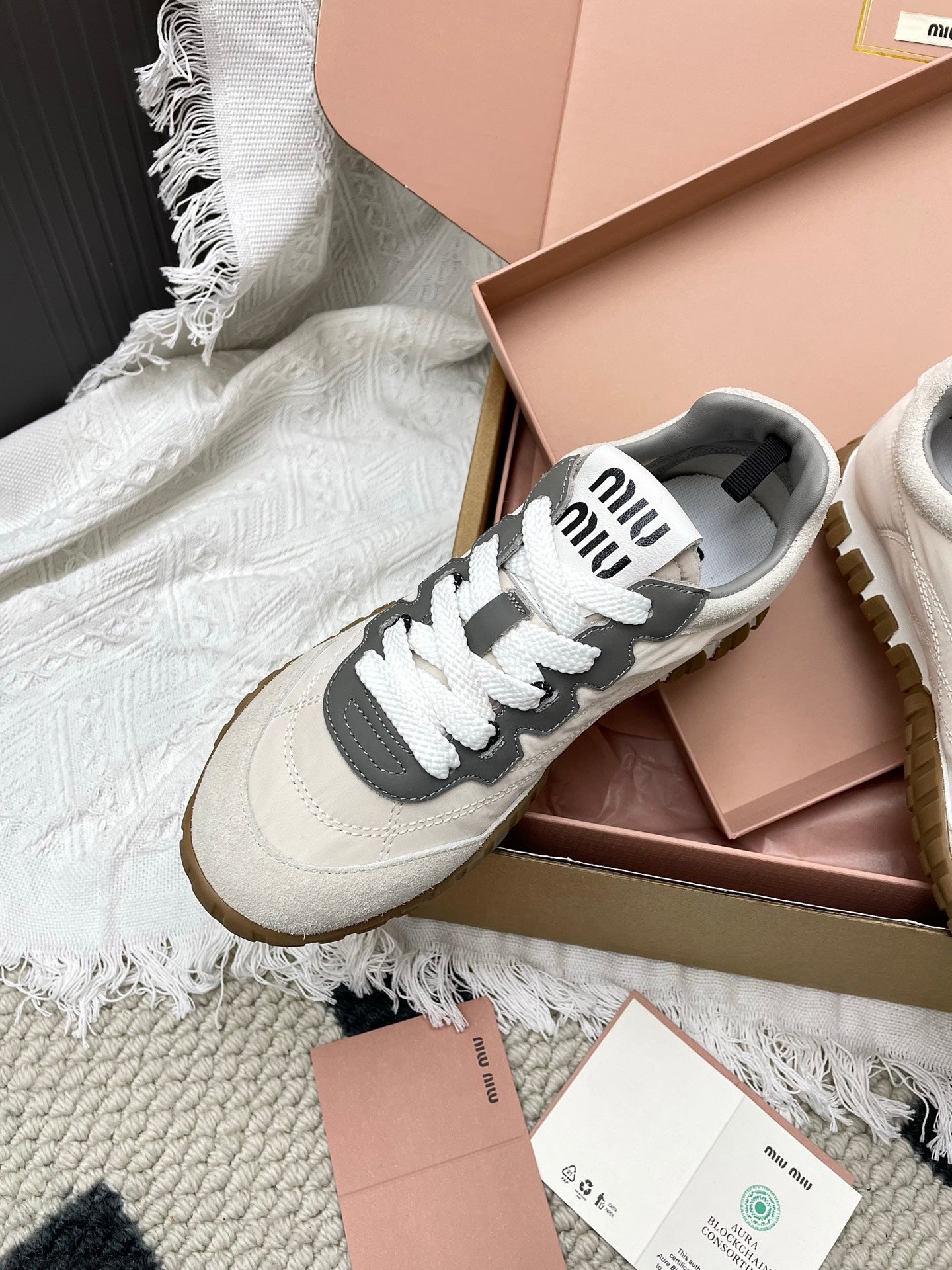 Miu Tyre Sneaker Ivory Taupe Suede 611343