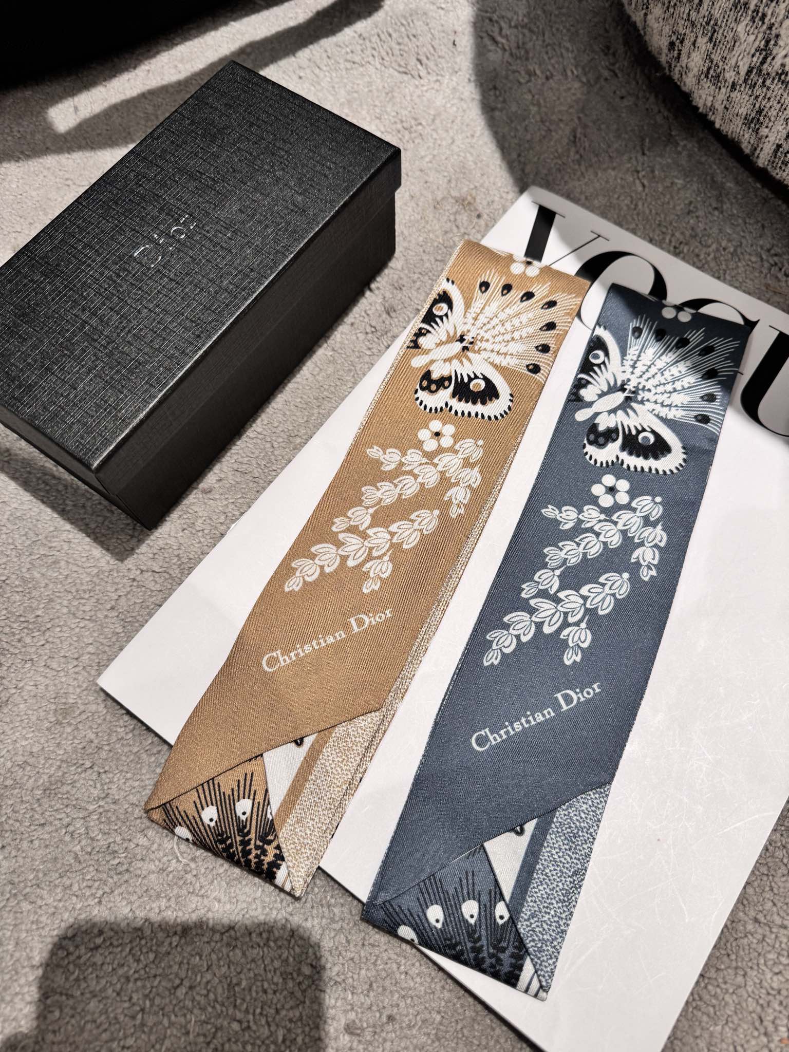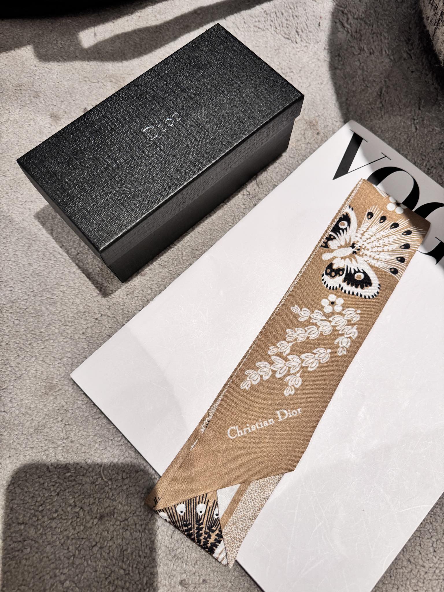 CD Twilly Mini Scarf 105cm Dark Beige Mulberry Silk 871177