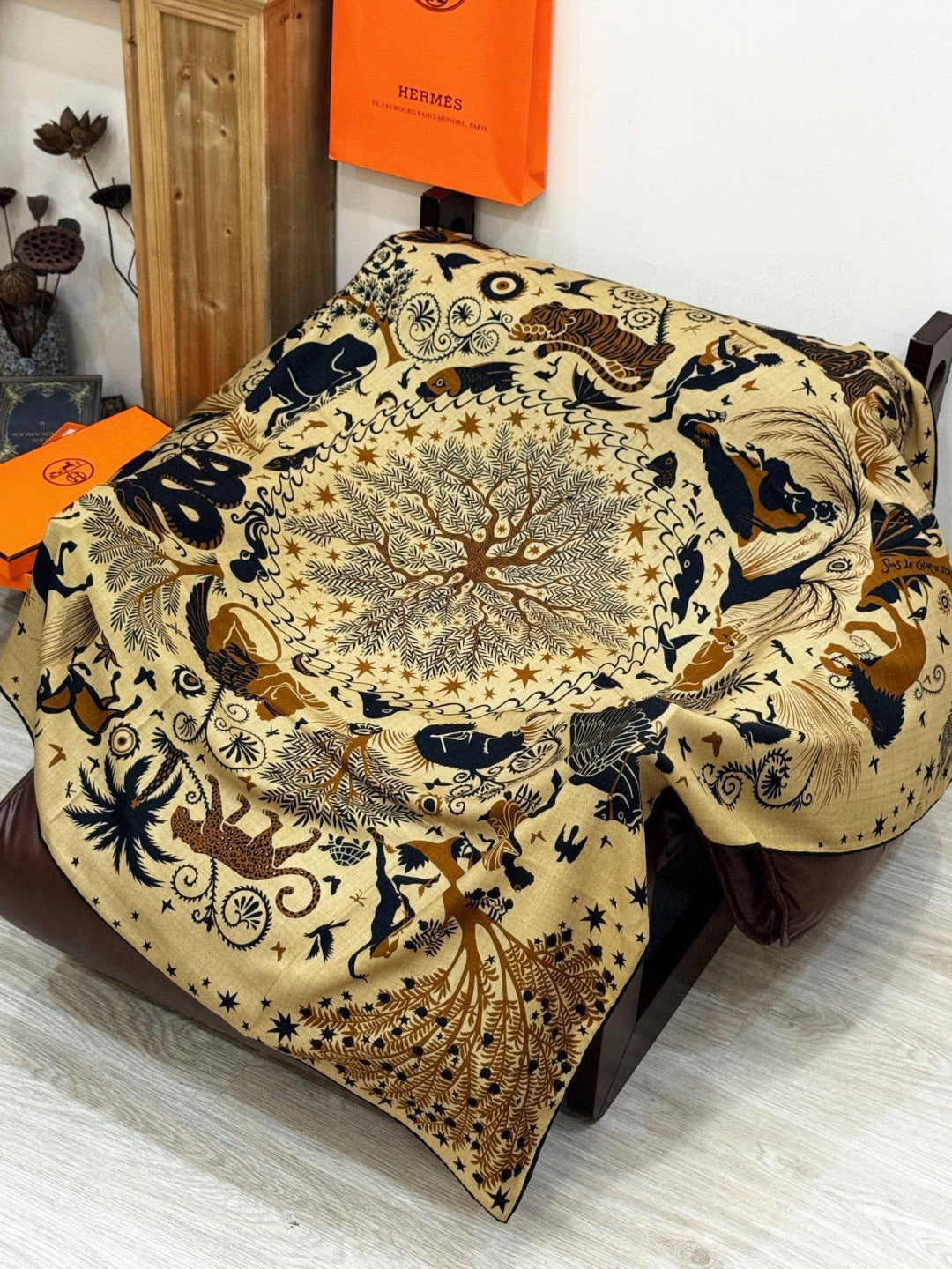 HM 25s Scarf 140cm Black Beige Cashmere Silk 962469