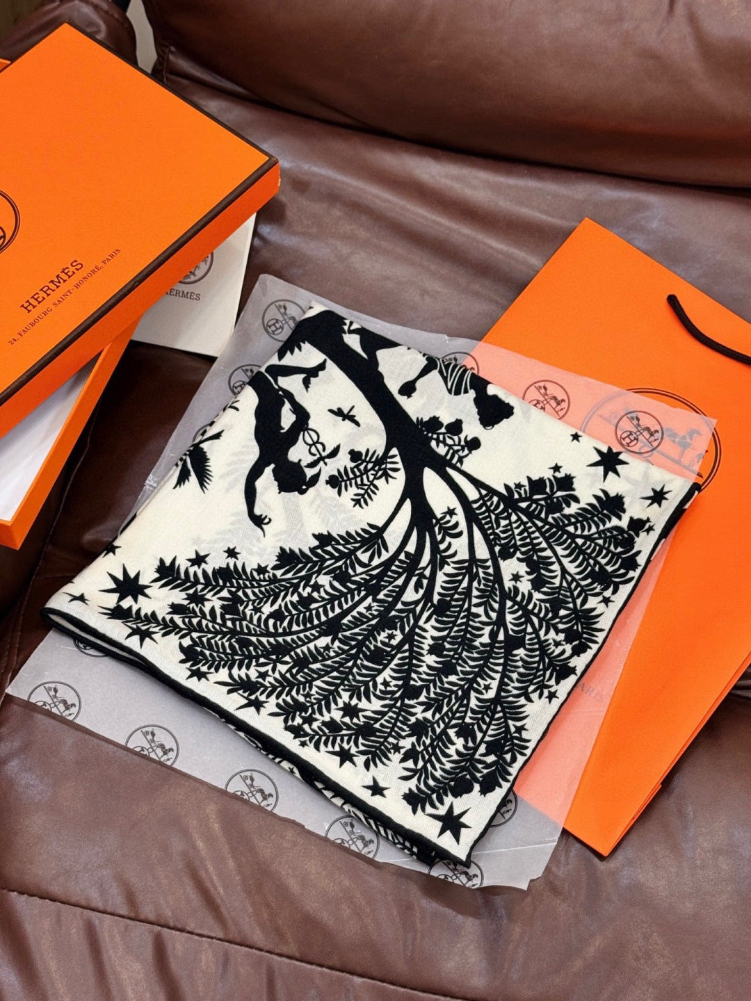 HM 25s Scarf 140cm Black White Cashmere Silk 962471