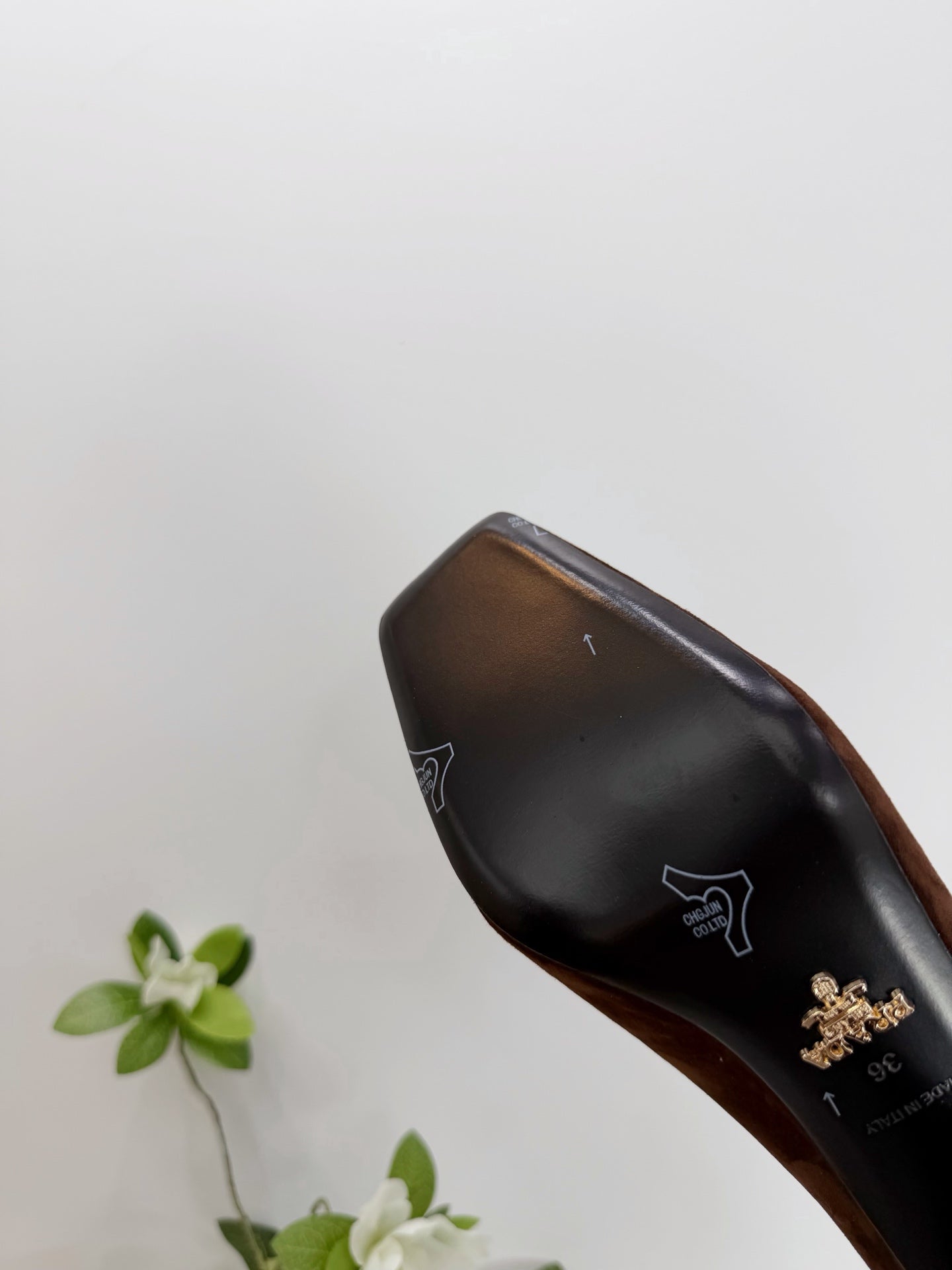 PRA 26SS Square-toe Block Heels 85 Dark Brown Suede 592362