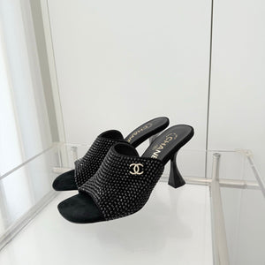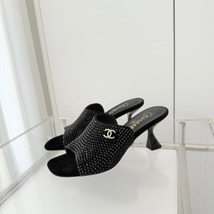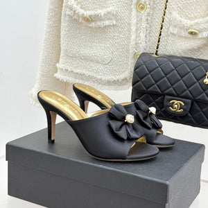 CC 26s Bow Slippers High Heel 75mm Black Satin Sheepskin 615745