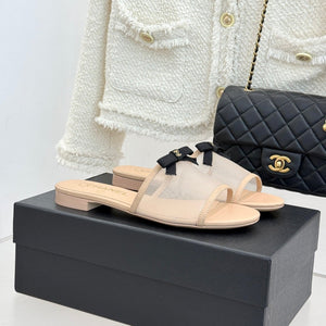 Chanel 26C Double C Bow Slippers Beige in Mesh 615708