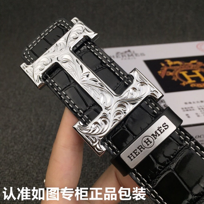 • H Buckle in permabrass plated metal.