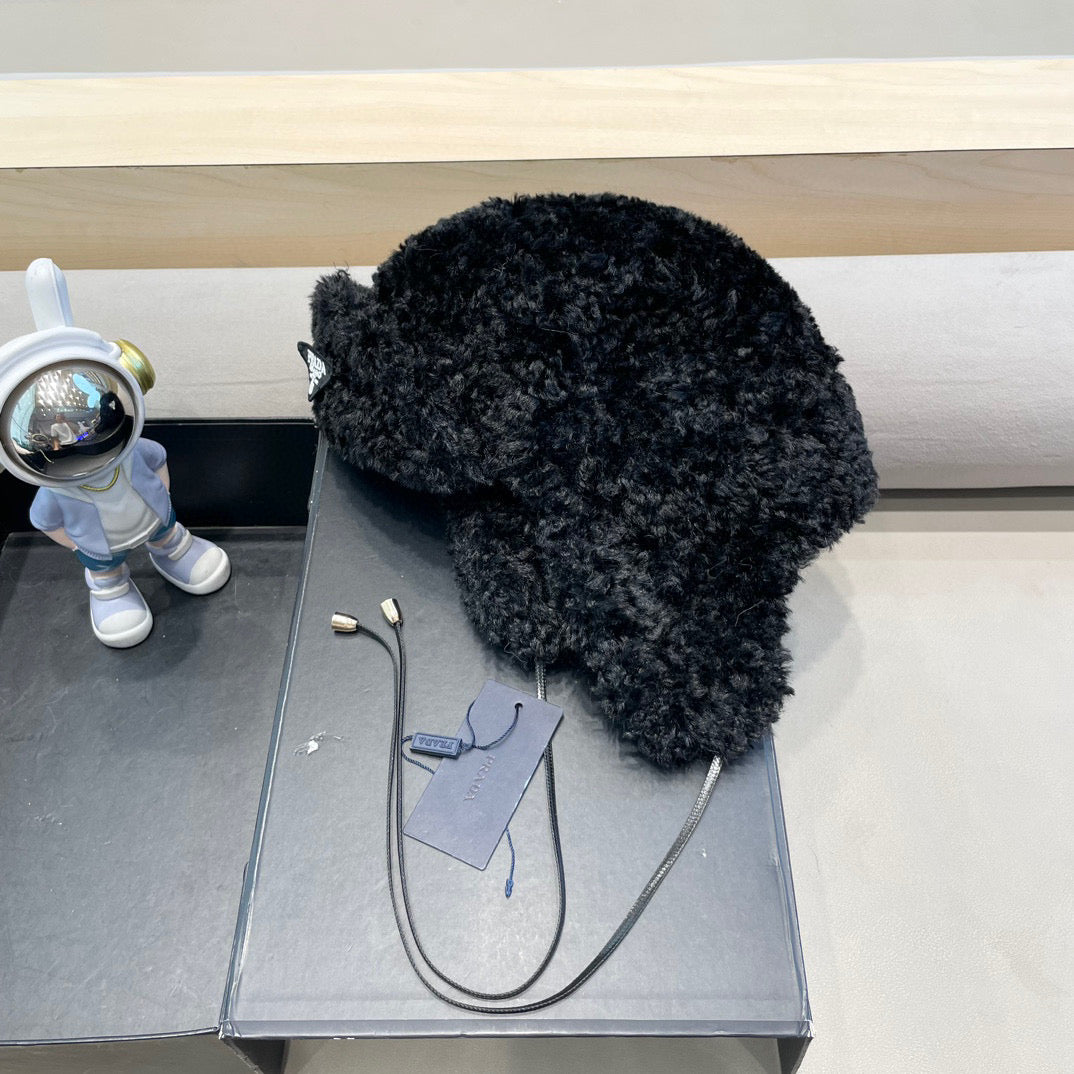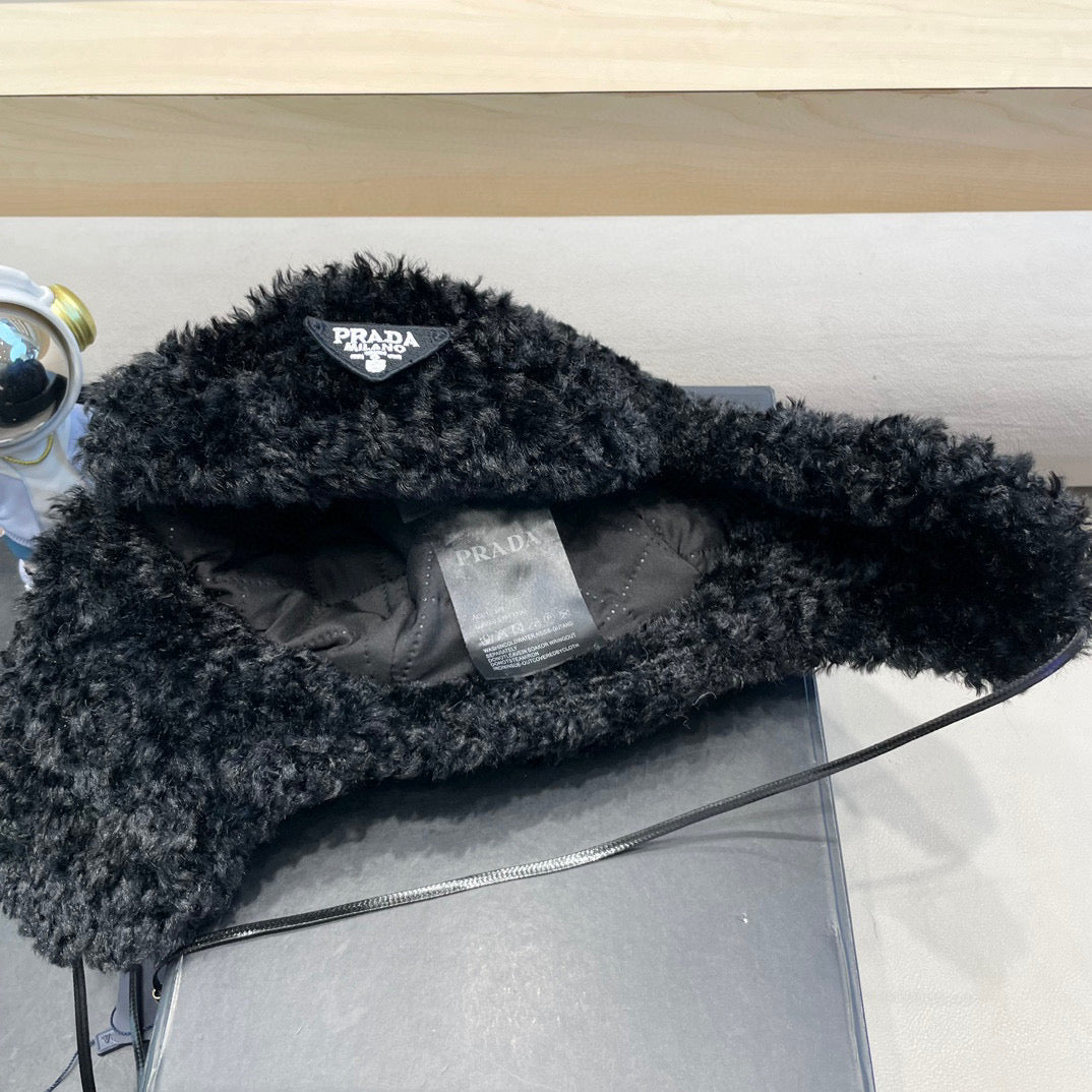 Prada Earflap Hat Black Lambswool 122340