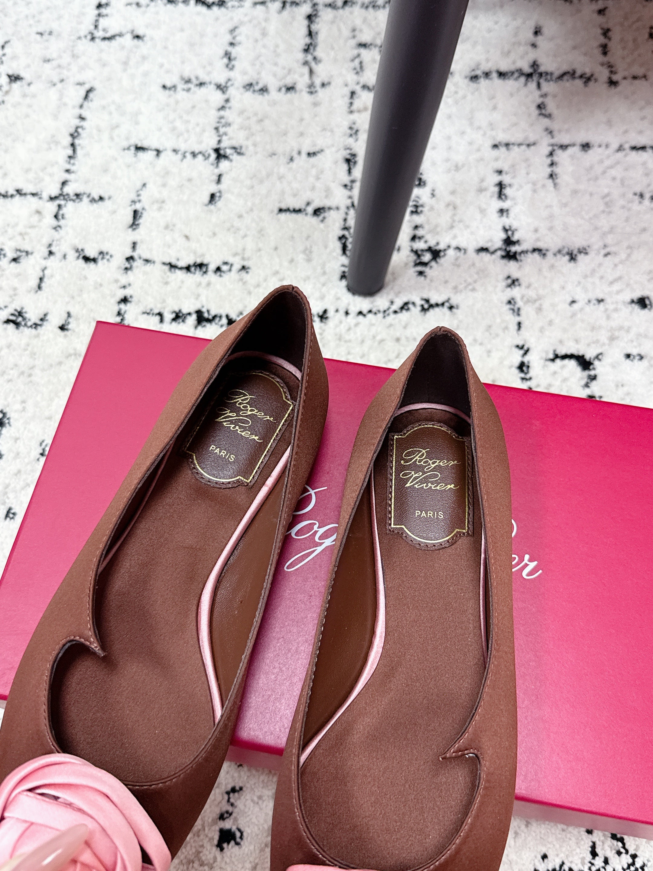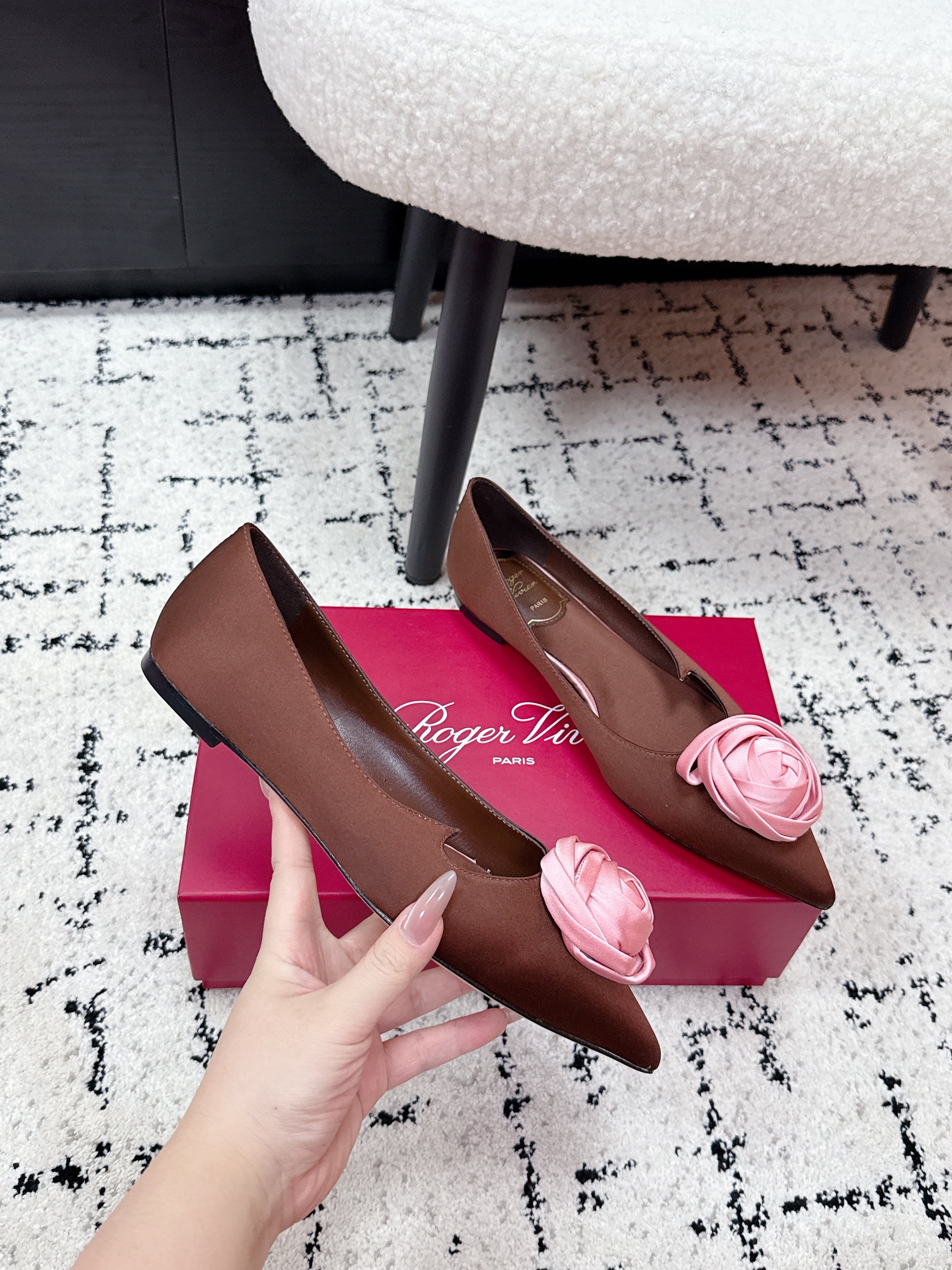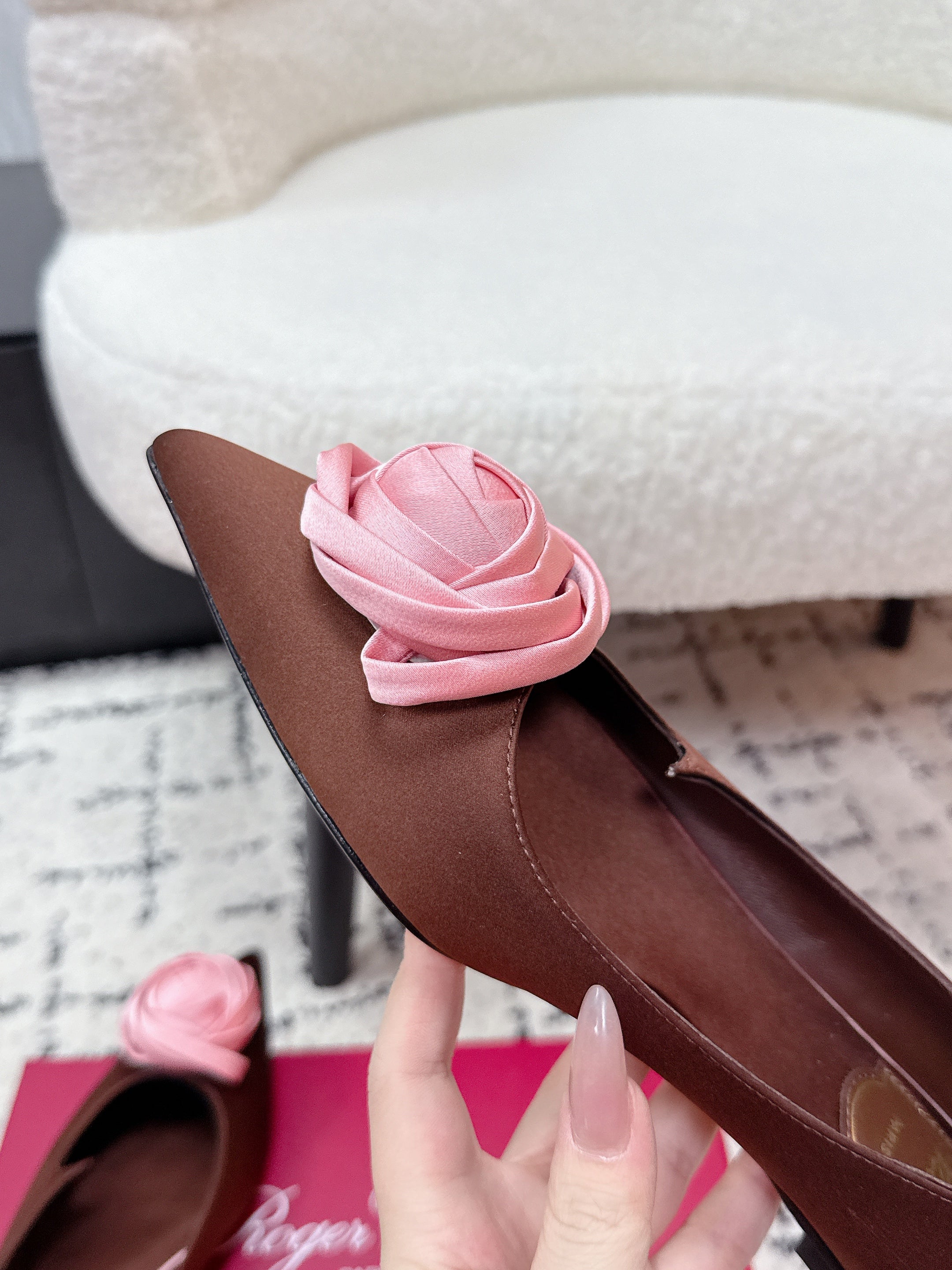RV Rose Vivier Flower Slingback Flat Pink Brown Satin 617285