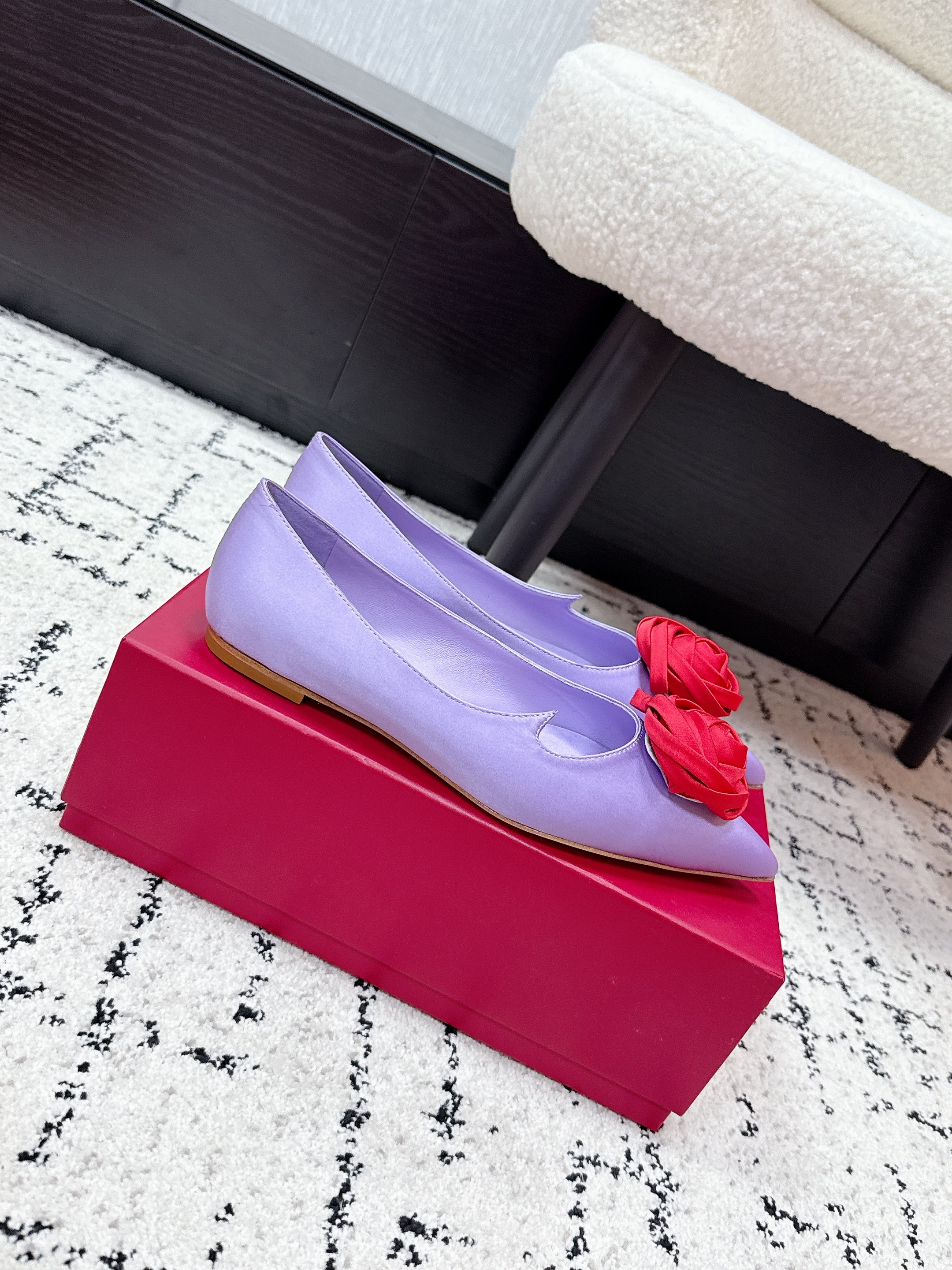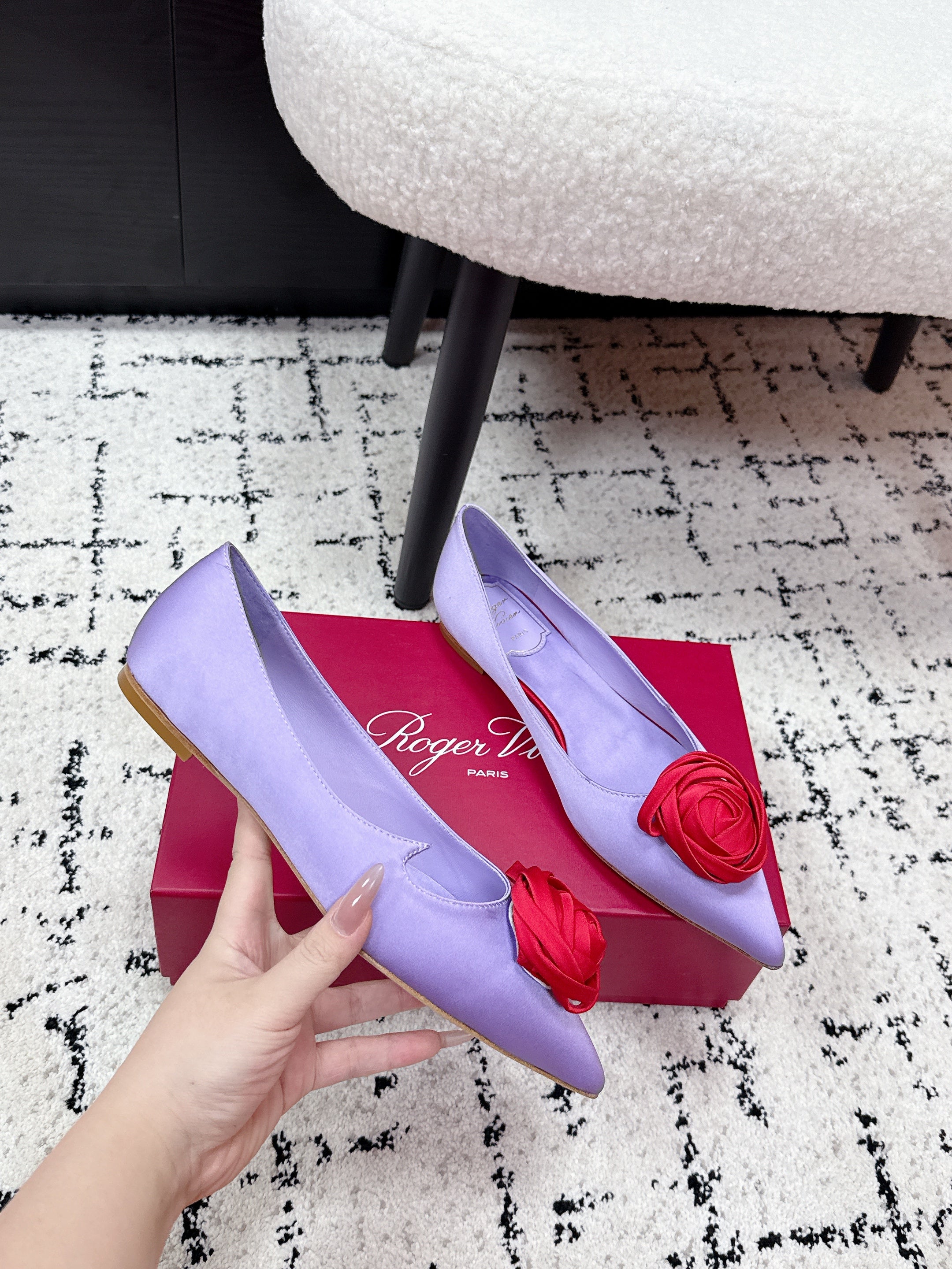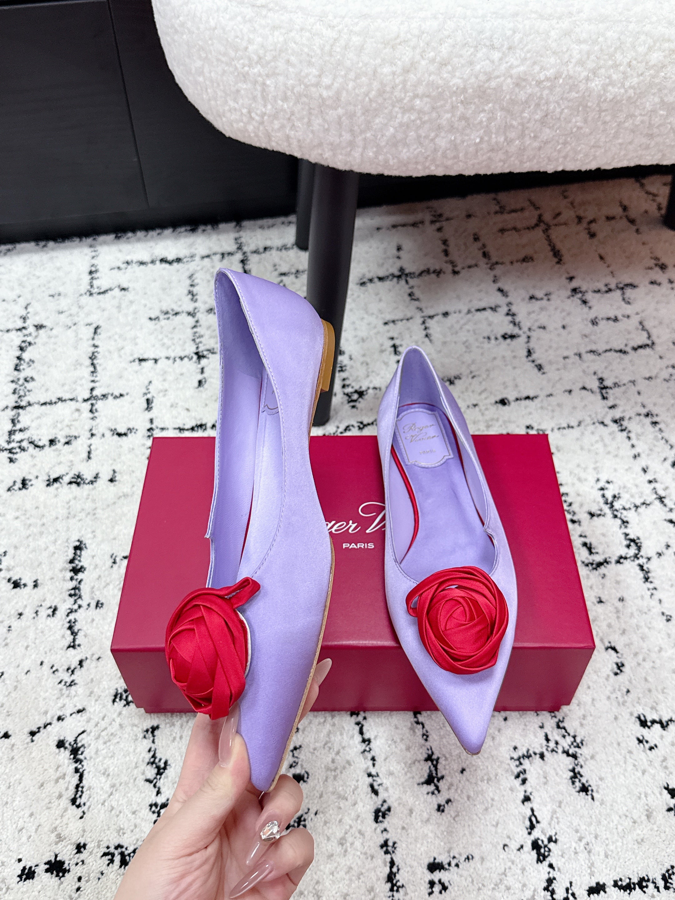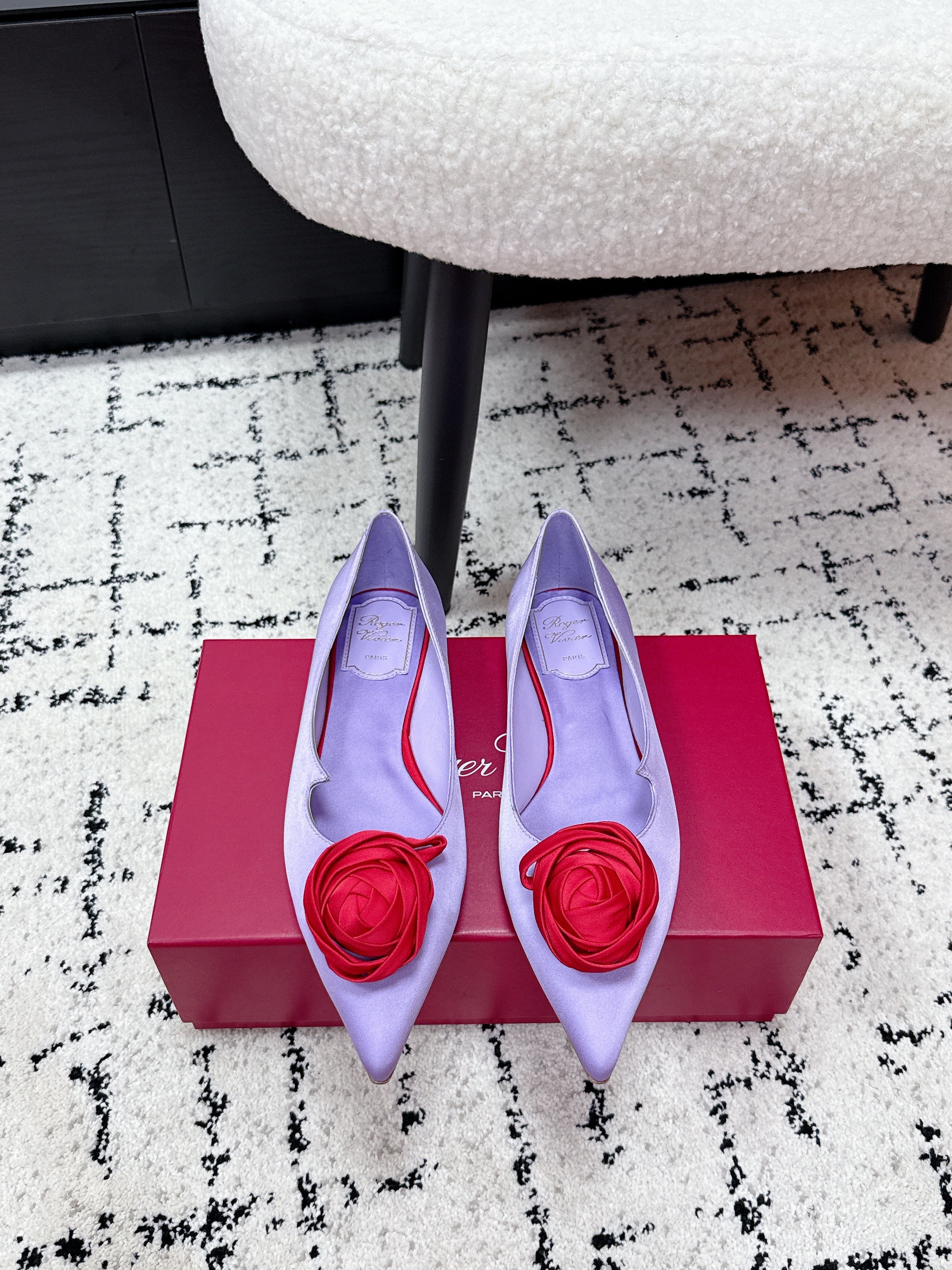 RV Rose Vivier Flower Slingback Flat Purple Red Satin 617287