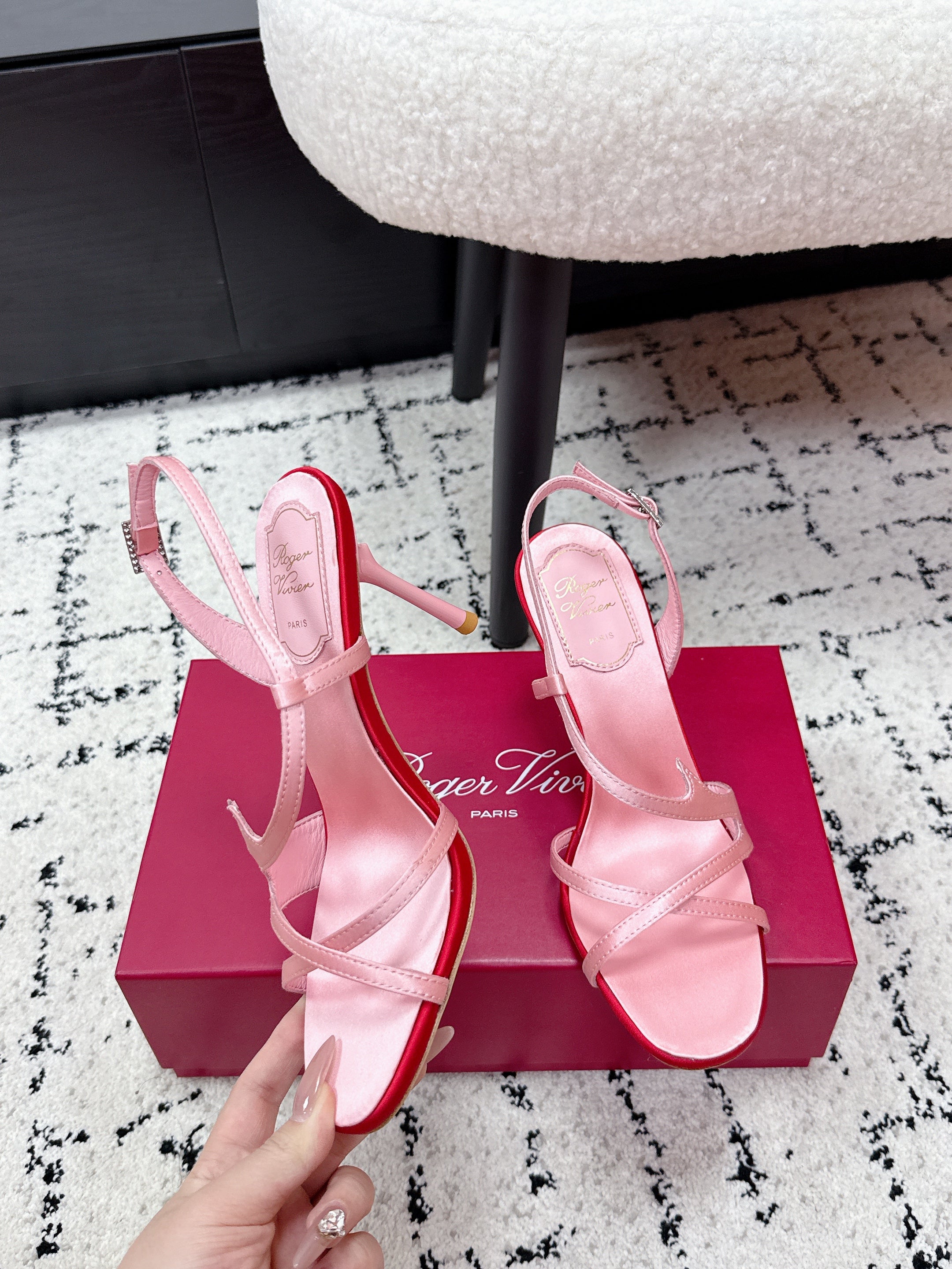 RV Rose Vivier Sandals 10cm Pink Satin 617306