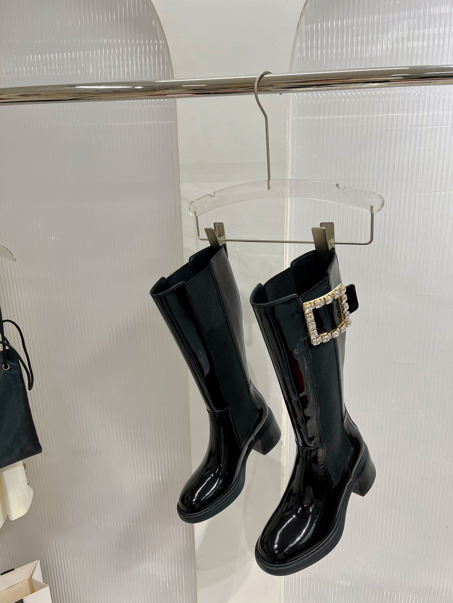 Viv Diamond High Boots Black Cowhide Patent Leather 365205