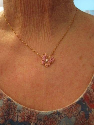 BUTTERFLY RED DIAMOND PINK GOLD NECKLACE